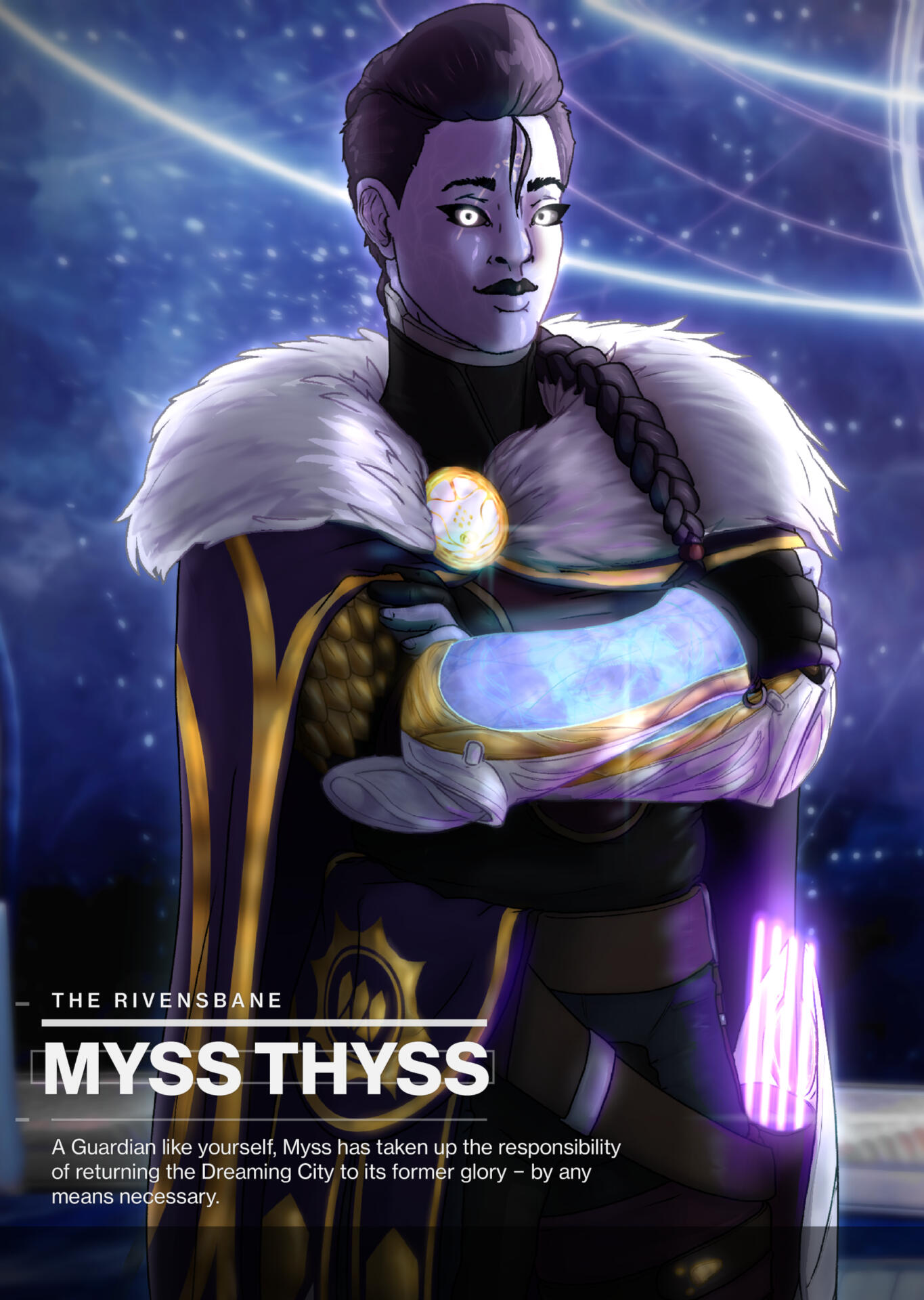 Mara Sov's theme. Myss was rezzed just after VoG was conquered and, after the loss of her first fireteam, she found a sense of belonging as she aided the Awoken during the House of Wolves ordeal.